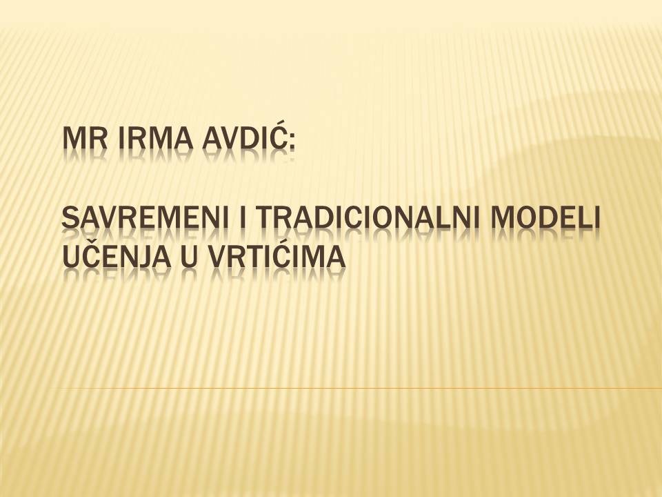 Mr Irma Avdić SAVREMENI I TRADICIONALNI MODELI UČENJA U VRTIĆIMA SADRŽAJ: Sažetak. 3 Uvod. 4 1. Tradicionalni,...